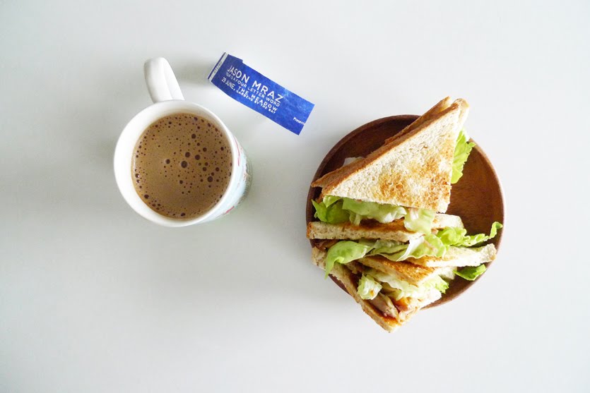 Chicken sandwich, coffee